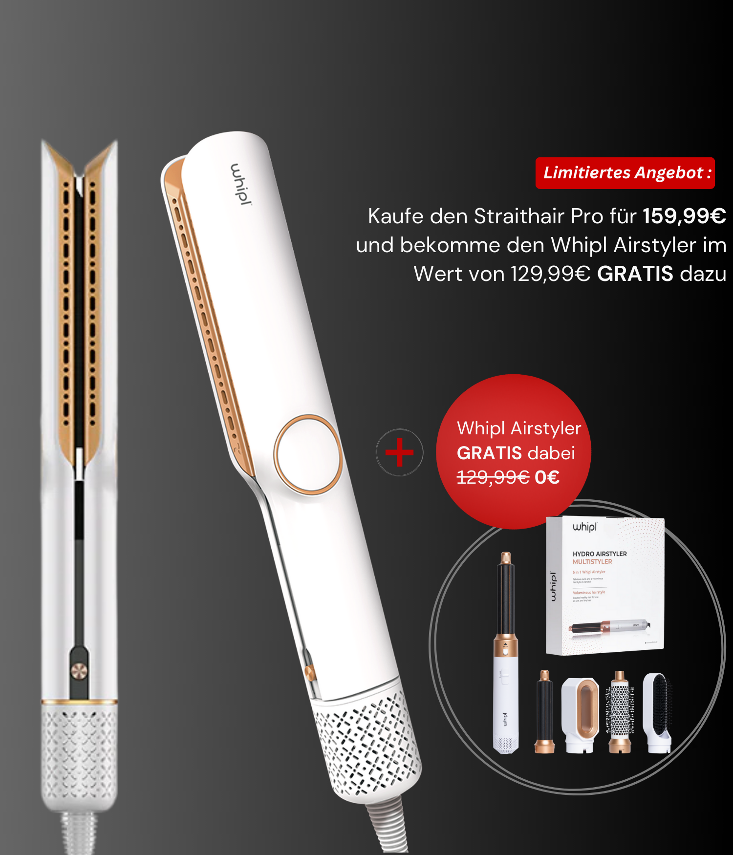 Der Whipl™ Straithair Pro überzeugt mit modernster Technologie, die entwickelt wurde, um das Haarstyling effizient, haarschonend und einfach zu gestalten: